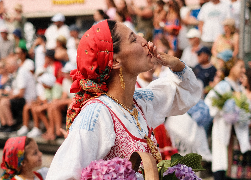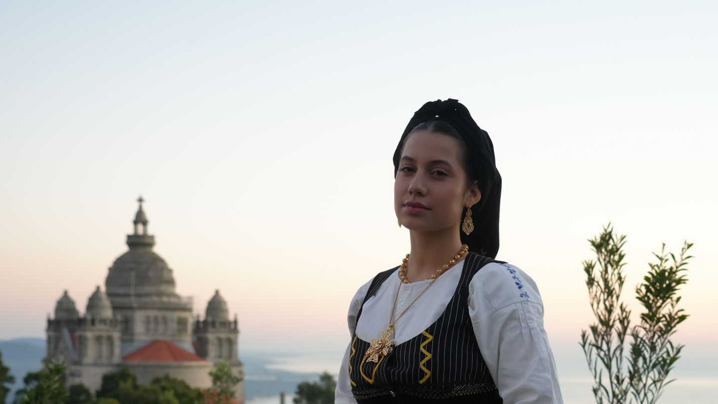 Viana do Castelo, in northern Portugal, is one of the sources of inspiration for this story due to the strength of its people and traditions. Founded in the Middle Ages, its port was crucial to the formation of Portugal. The legend of its name echoes the ancestral love of a young man who, whenever he saw Princess Anne in the castle window, would passionately cry out, " I saw Anne from the castle! " Between the sea and the art of filigree, the famous Hearts of Viana were born, an emblematic piece of Portuguese culture and this history. The Desfile da Mordomia (Mordomia Parade) still celebrates the pride and devotion of Minho women today.